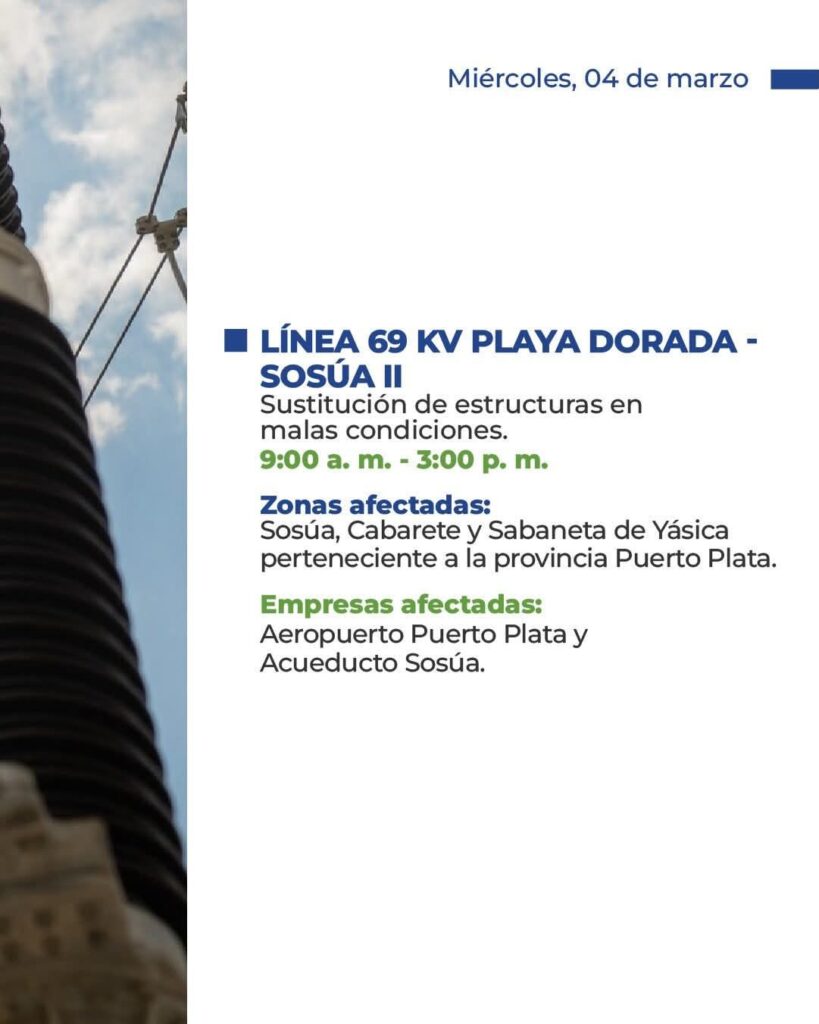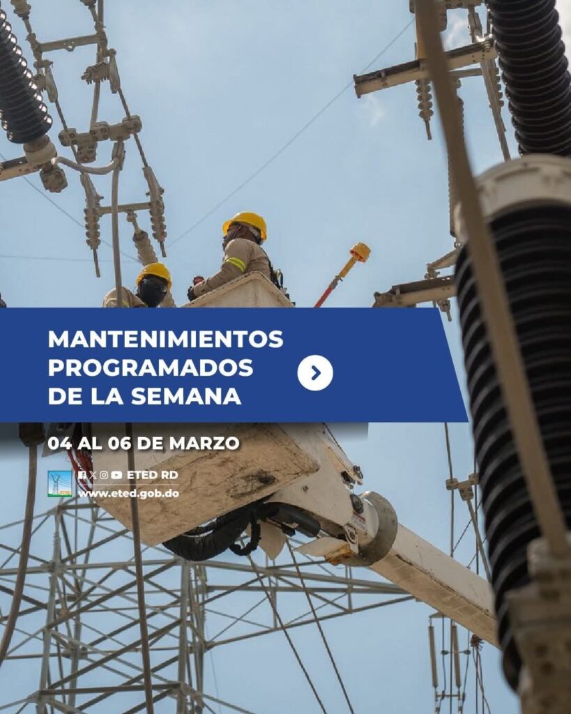 Como parte de su planificación operativa, la ETED informa a la ciudadanía sobre los mantenimientos preventivos y correctivos programados para esta semana.Estas labores forman parte de una gestión responsable de la infraestructura de transmisión eléctrica y son fundamentales para:
