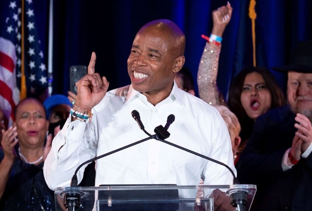 El ejecutivo municipal estuvo acompañado por la canciller escolar Melissa Aviles-Ramos, el director de tecnología Matthew Fraser, el vicealcalde Randy Mastro y la estrella de los Yankees Jazz Chisholm Jr., entre otros.
