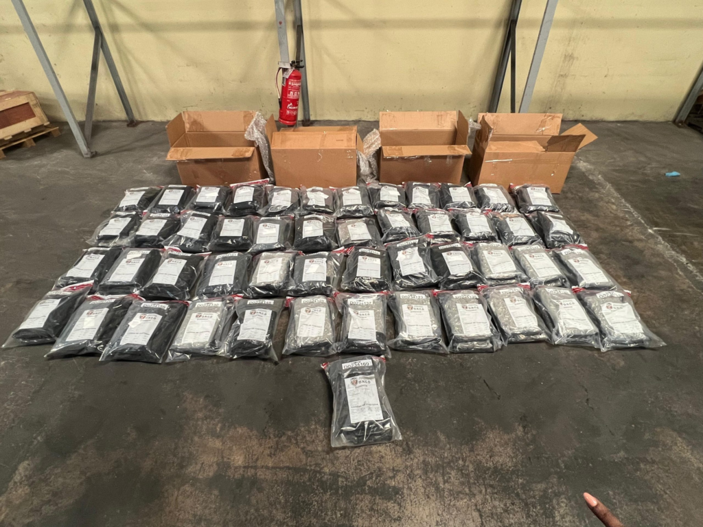 El hallazgo se produjo cuando los equipos de inspección detectaron imágenes sospechosas mediante rayos X al revisar varias cargas en uno de los depósitos de la terminal. Posteriormente, una unidad canina confirmó la presencia de sustancias controladas, lo que activó de inmediato el protocolo de actuación de las autoridades.