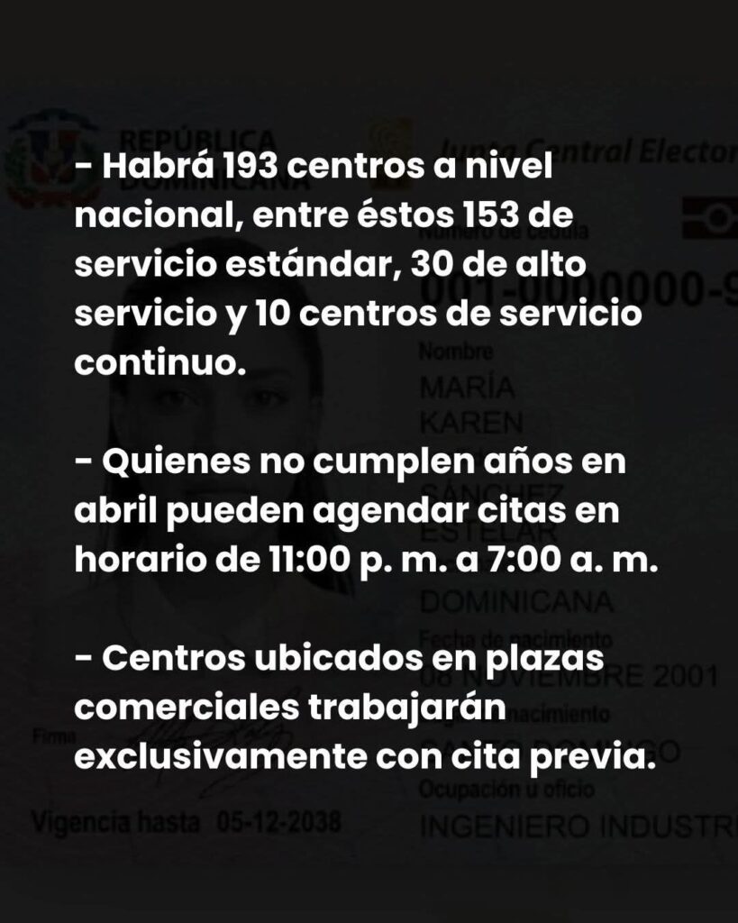 Para esta renovación, la JCE ha dispuesto 193 centros a nivel nacional, distribuidos en tres modalidades: 153 de servicio estándar, 30 de alto servicio y 10 centros de servicio continuo que operarán las 24 horas.