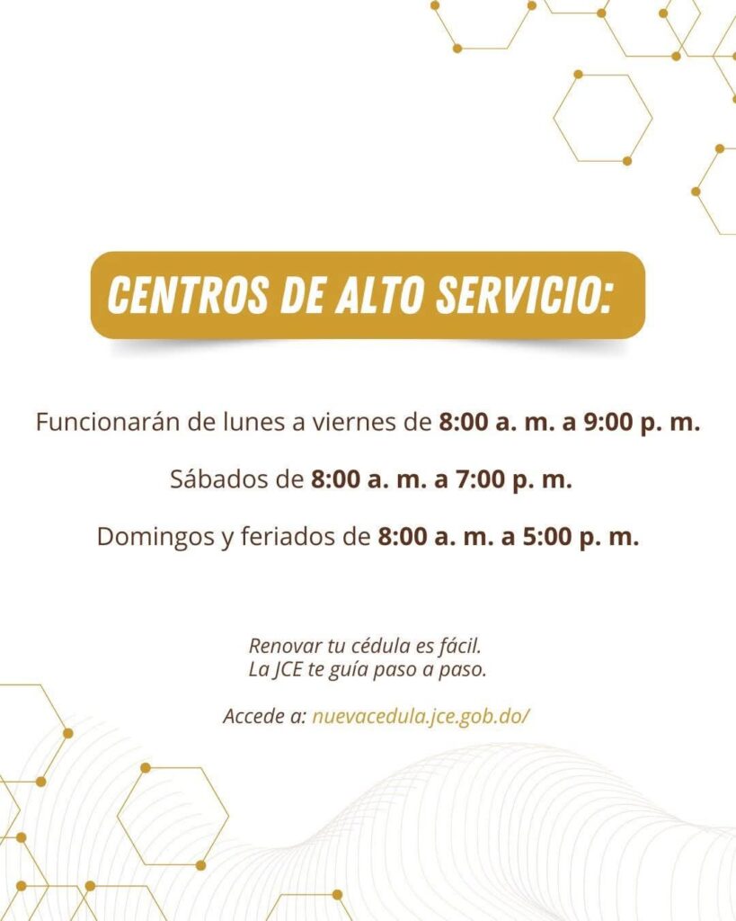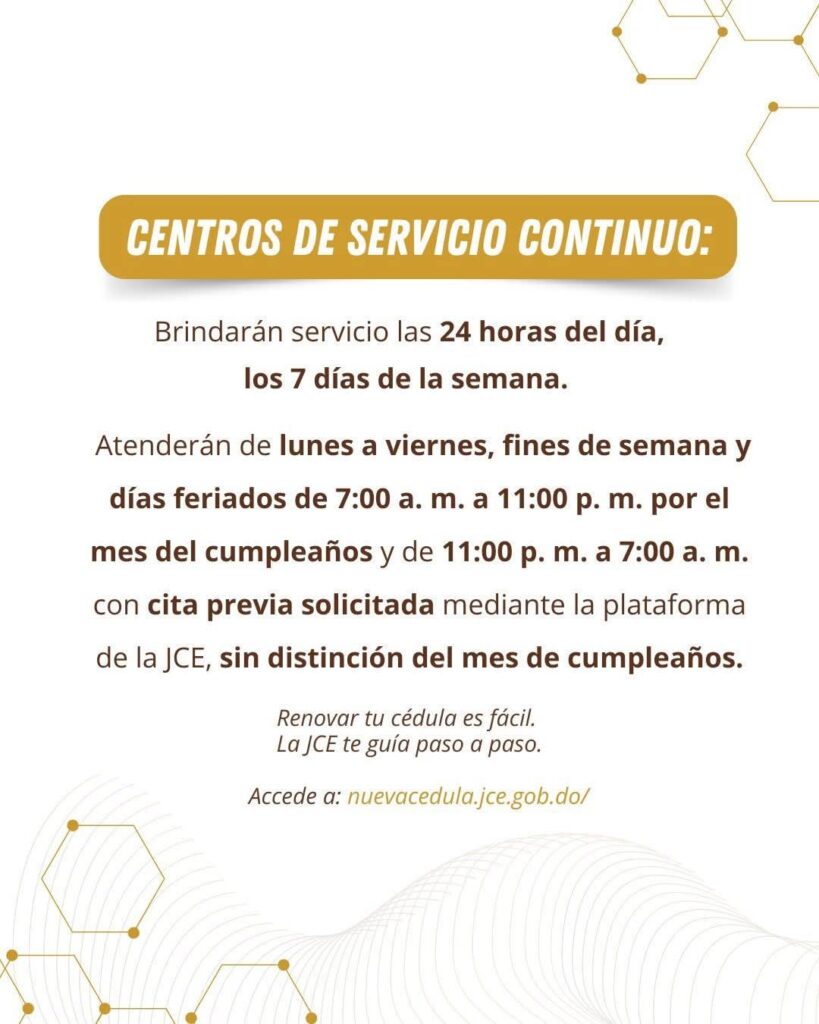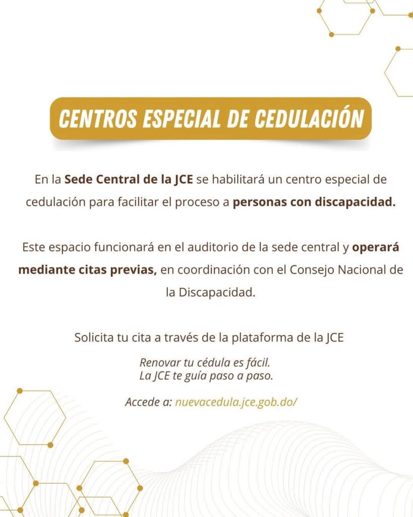 Noticias La Junta Central Electoral pone a disposición de la ciudadanía una amplia red de Centros de Cedulación para facilitar el proceso de renovación de la #NuevaCédula durante el mes de tu cumpleaños. Redacción marzo 17, 2026 Spread the love Podrás acudir a cualquiera de estos centros distribuidos estratégicamente en todo el territorio nacional. Tu cédula eres tú, porque tu identidad es única. NuevaCédulaRD Continue Reading Previous: Presidente Abinader juramenta comité gestor del Observatorio Ambiental; se refuerza compromiso del Gobierno con gestión ambiental participativa, transparente y orientada a la sostenibilidadNext: Presidente Abinader asiste a apertura de clase magistral que busca fortalecer la transparencia y rendición de cuentas a nivel internacional Deja un comentario Cancelar respuestaTu dirección de correo electrónico no será publicada. Los campos obligatorios están marcados con *Comentario * Nombre * Correo electrónico * Web Guardar mi nombre, correo electrónico y sitio web en este navegador para la próxima vez que haga un comentario. De tu Interes Noticias ETED realizará mantenimiento preventivo en subestación de Puerto Plata este miércoles Redacción marzo 17, 2026 Noticias Más de 190 centros operarán a nivel nacional, incluidos 8 que funcionarán 24 horas Redacción marzo 17, 2026 Noticias Presidente Abinader asiste a apertura de clase magistral que busca fortalecer la transparencia y rendición de cuentas a nivel internacional Redacción marzo 17, 2026