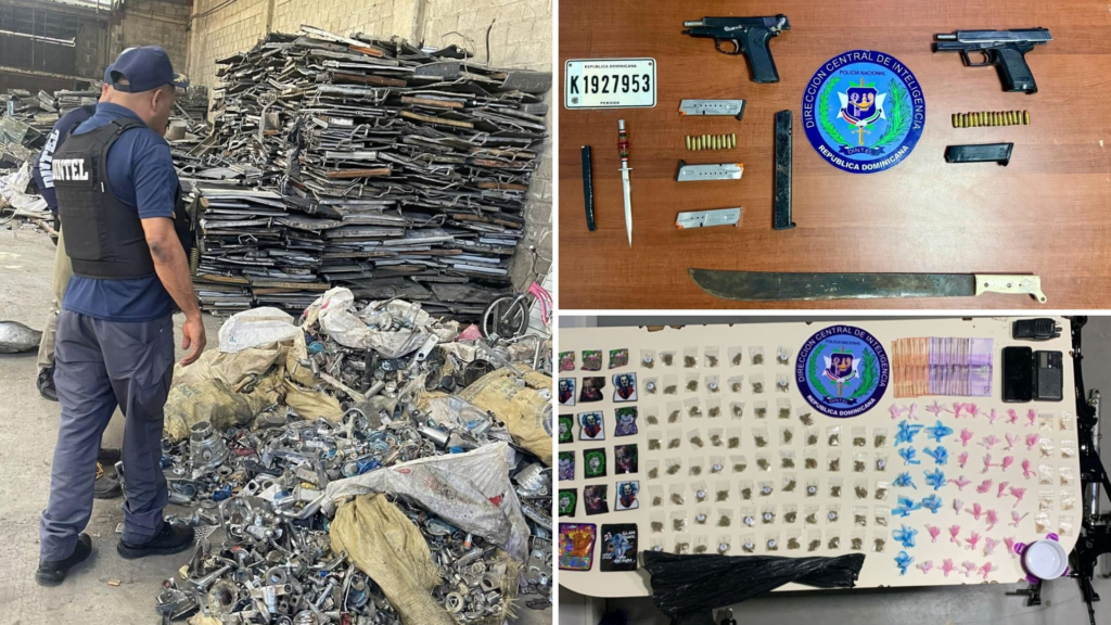 Santiago.- La Policía Nacional informó este jueves que se ejecutaron tres allanamientos simultáneos en diferentes sectores de Santiago, donde fueron arrestadas tres personas y confiscadas drogas, armas ilegales, dinero en efectivo y una gran cantidad de alambres presuntamente obtenidos sin documentación.