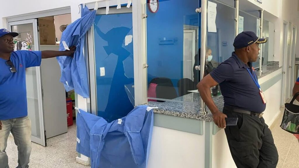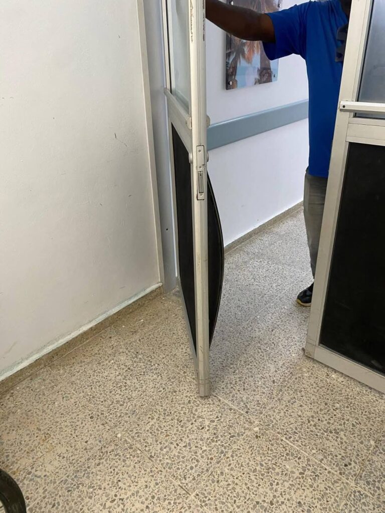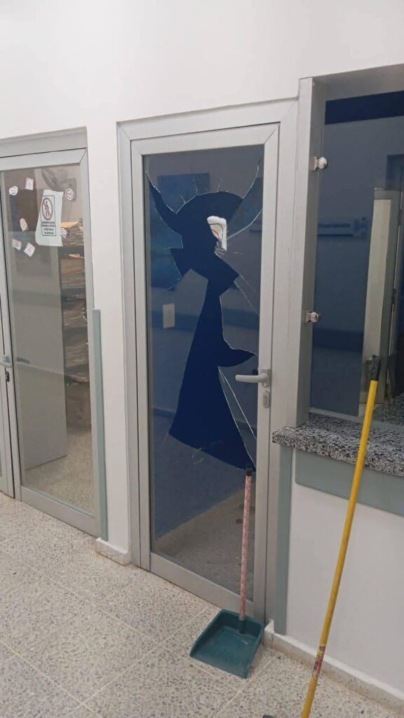 Entre los daños causados están roturas de los cristales de la puerta de Emergencia, rotura total de puertas de oficinas y llavines.