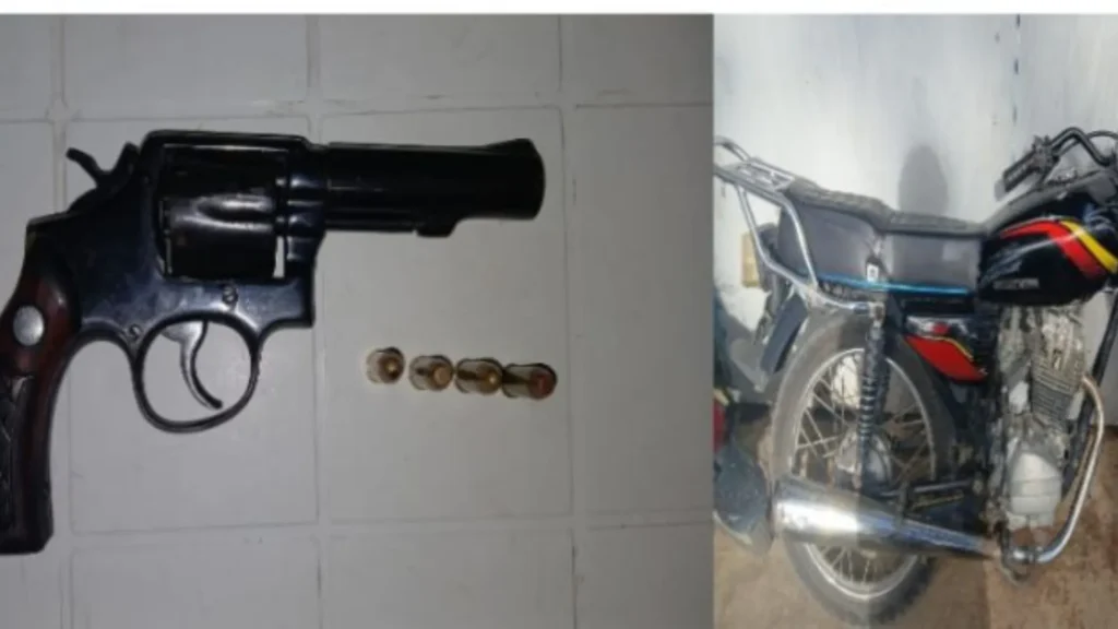 En el municipio de Villa González fue arrestado Emiliano Martire Ruviera Fermín alías “Carlos”, de 41 años, a quien se le ocupó un revólver calibre 38 con cuatro cápsulas, además de una motocicleta. El detenido alegó que el arma pertenece a la empresa para la que trabaja como seguridad.