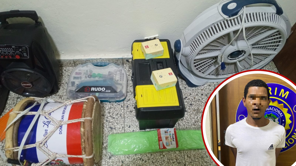 Según la denuncia, el imputado forzó la cerradura de la puerta del almacén del centro educativo y sustrajo varios objetos de valor, entre ellos equipos electrónicos, abanicos, instrumentos musicales (como güira y tambora), así como otros artículos de carácter folclórico.