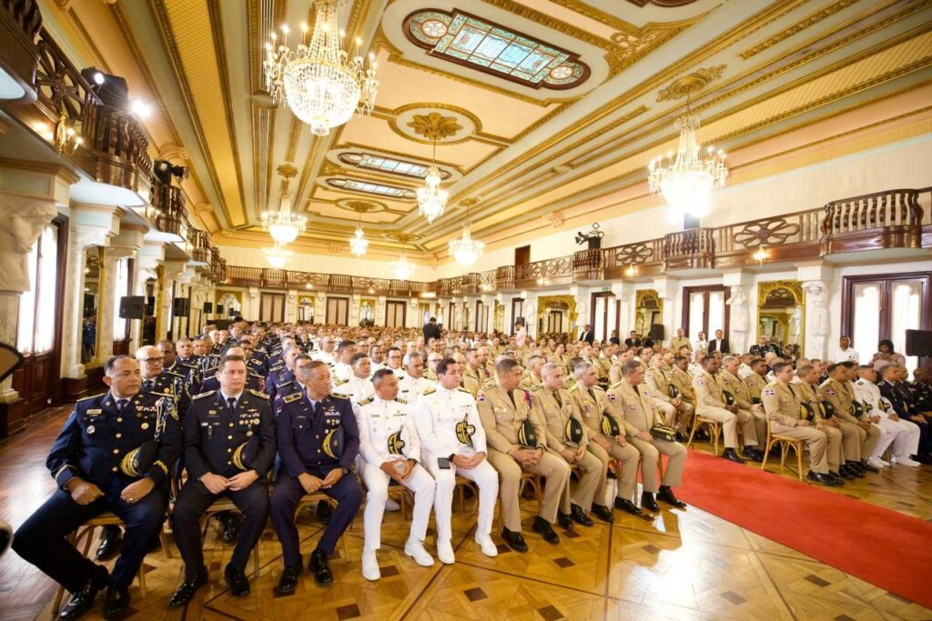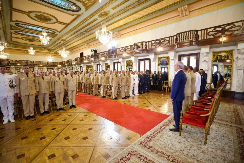 Santo Domingo. – El presidente Luis Abinader, expresó este viernes su orgullo y admiración por las Fuerzas Armadas y la Policía Nacional, al encabezar el acto de salutación solemne de oficiales que conmemoran 35, 30, 25 y 20 años de servicio ininterrumpido, resaltando que la República Dominicana se ha consolidado como “un faro de paz, tranquilidad y estabilidad” en la región gracias al fortalecimiento y trabajo de estos cuerpos.