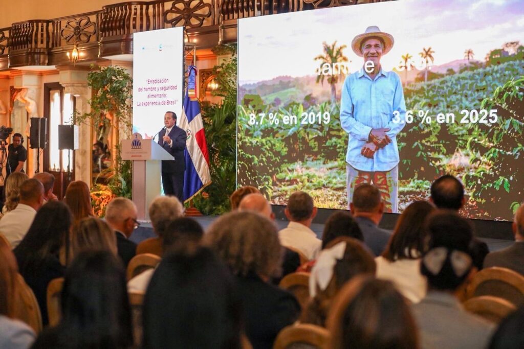 Durante la conferencia magistral “Erradicación del hambre y seguridad alimentaria: la experiencia de Brasil”, celebrada en el Salón Las Cariátides del Palacio Nacional, el exdirector general de la FAO resaltó el enfoque dominicano de compras públicas a productores locales y agricultura familiar, señalando que este modelo contribuye simultáneamente a mejorar la nutrición infantil, el aprendizaje y la dinamización de la economía rural.