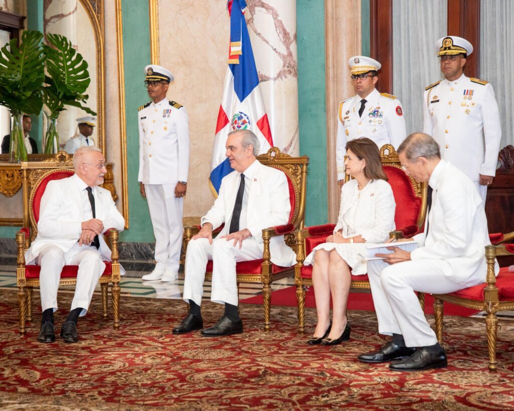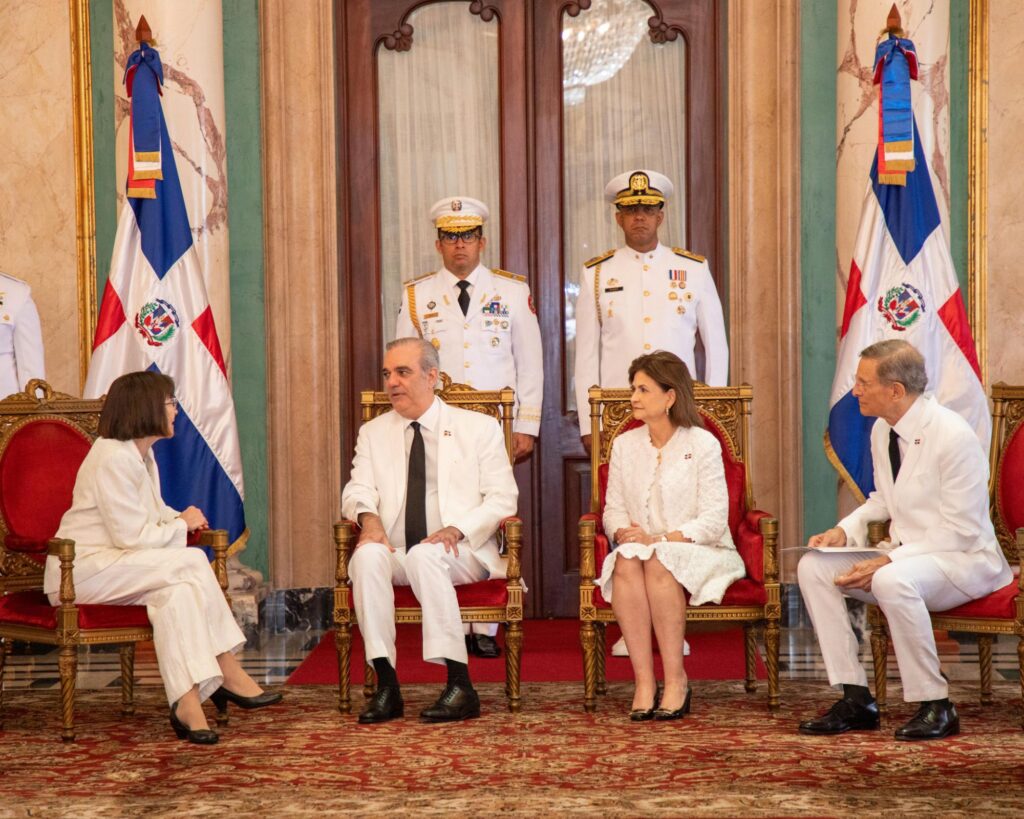 Santo Domingo.– El presidente Luis Abinader, junto con la vicepresidenta Raquel Peña y el ministro de Relaciones Exteriores, Roberto Álvarez, recibió este miércoles las cartas credenciales de seis nuevos embajadores acreditados en la República Dominicana, quienes asumen sus funciones con una amplia trayectoria en el servicio exterior y en diversos ámbitos de la cooperación internacional.